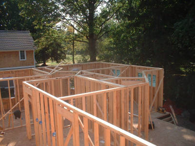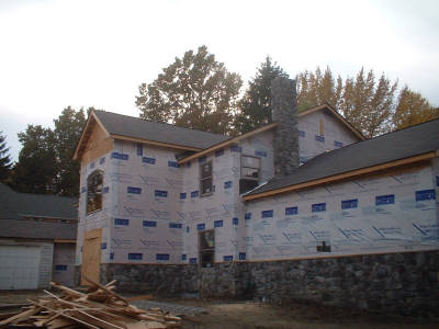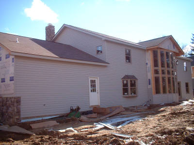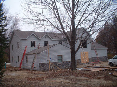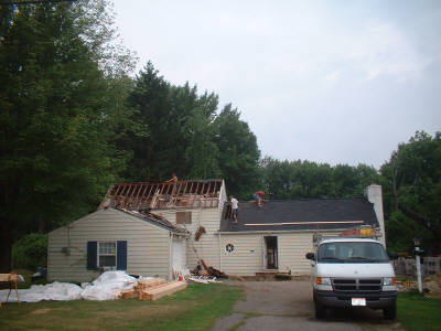 Call us at 216-513-8770 or 440-207-0717 demolition begins construction begins meanwhile on the front of the house... the original house is pretty much engulfed by the new at this point siding roofing and gutterwork begins... |