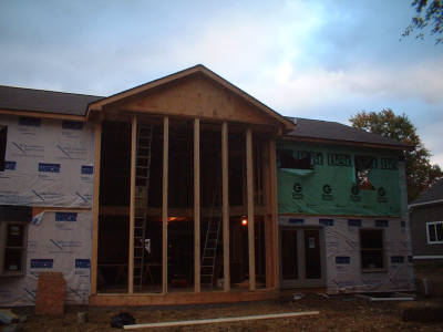 Call us at 216-513-8770 or 440-207-0717 demolition begins construction begins meanwhile on the front of the house... the original house is pretty much engulfed by the new at this point siding roofing and gutterwork begins... |