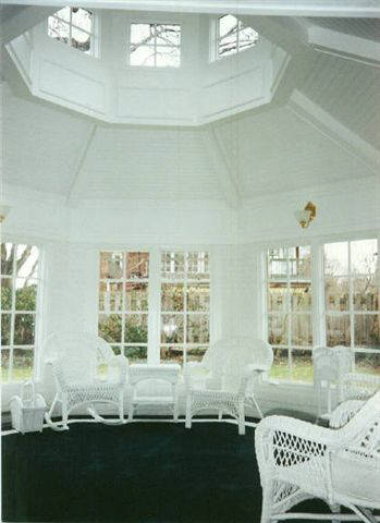Exterior and interior of an addition on the back of a home -notice the high windows and cupola view in the interior